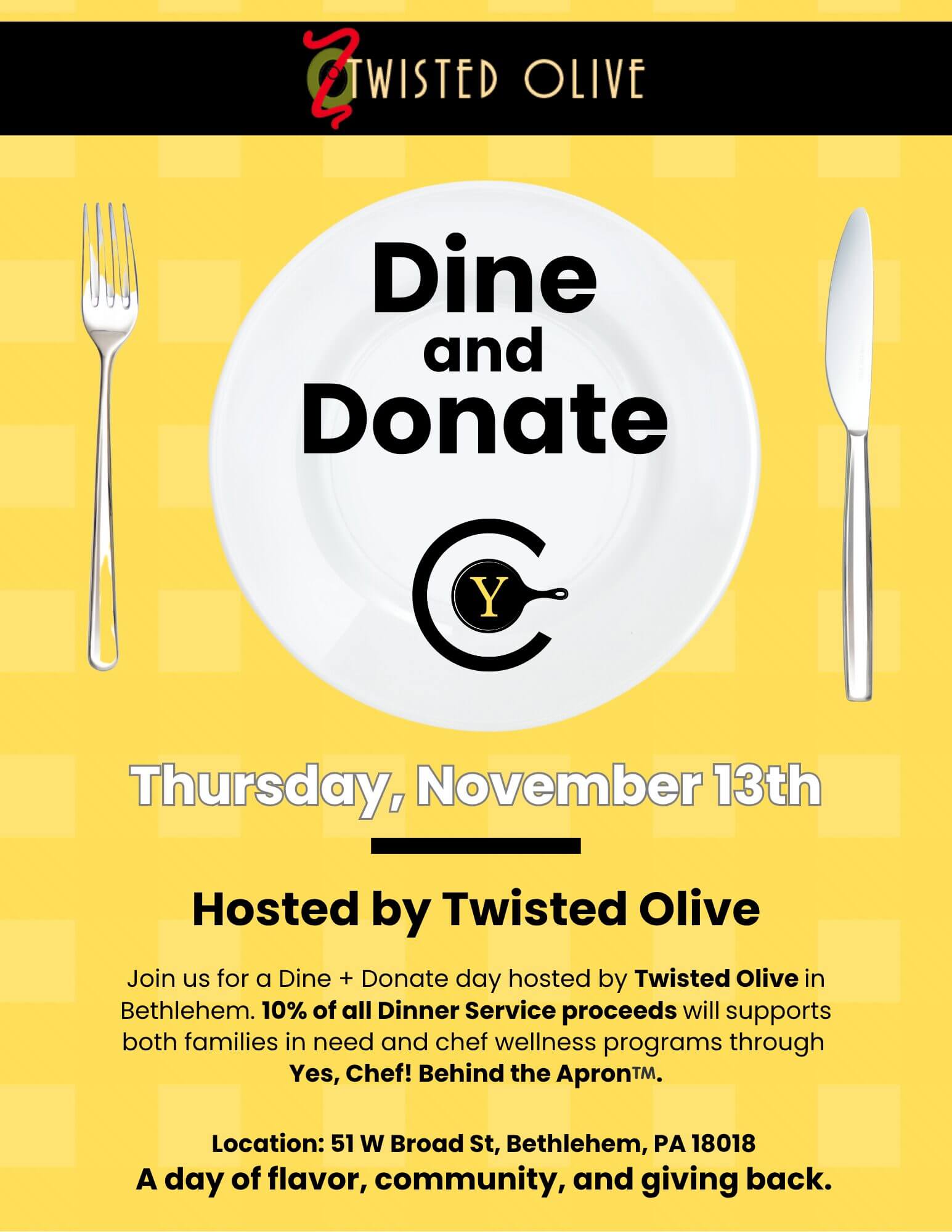 Join us for a Dine and Donate Dinner, hosted by Twisted Olive in Bethlehem. 10% of all dinner service proceeds will support both families in...
